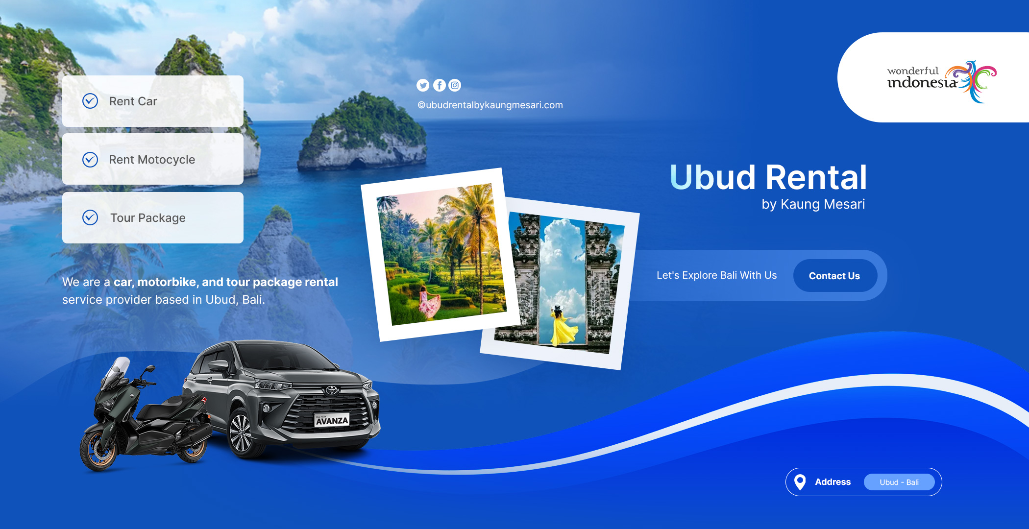 Find the best car rental services, motorbikes, and tour packages in Bali with Ubud Rental by Kaung Mesari. Enjoy quality vehicles, affordable prices, and friendly service.